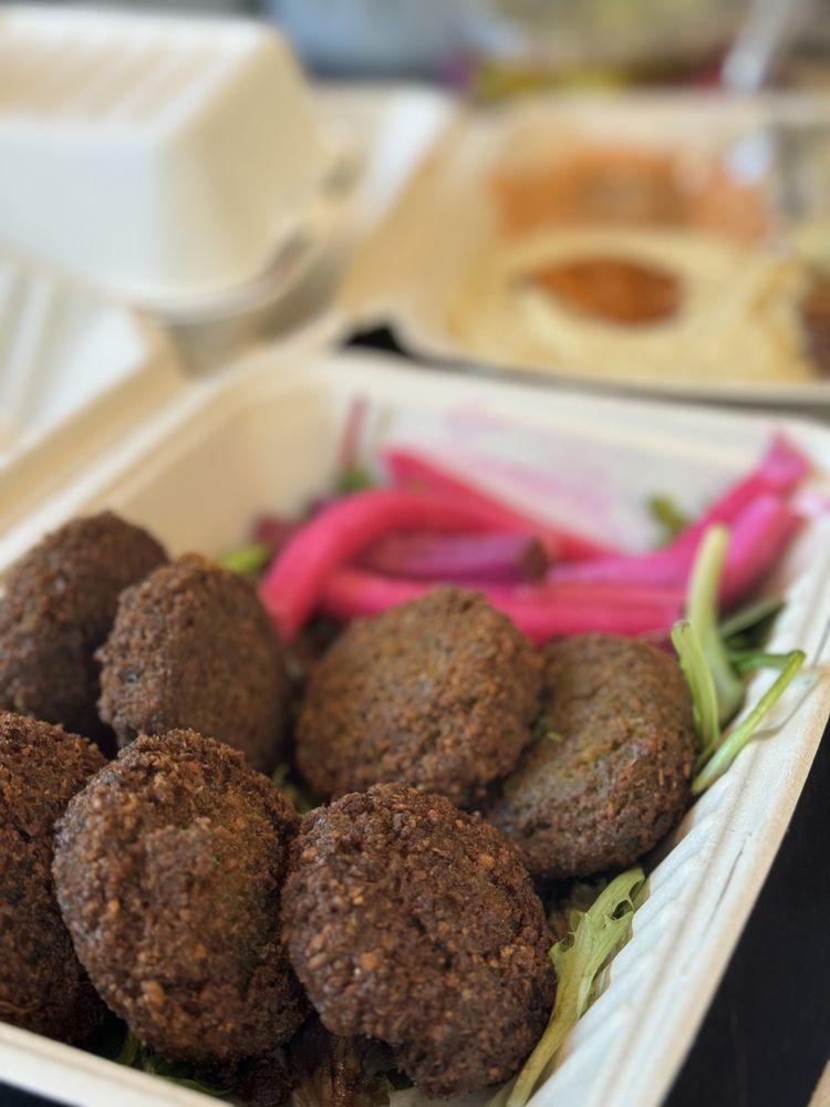 5 pieces of Kareem's falafel served with any 2 sides. Accompanied with pickles, pita, and tahini. (Vegan)